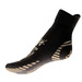 Además, la adherencia del calcetín al pie favorece la postura correcta de la columna vertebral, mientras que el trabajo con el pie libre de estructuras rígidas ayuda a reactivar la circulación y mejorar el retorno venoso, contribuyendo al bienestar general del cuerpo.